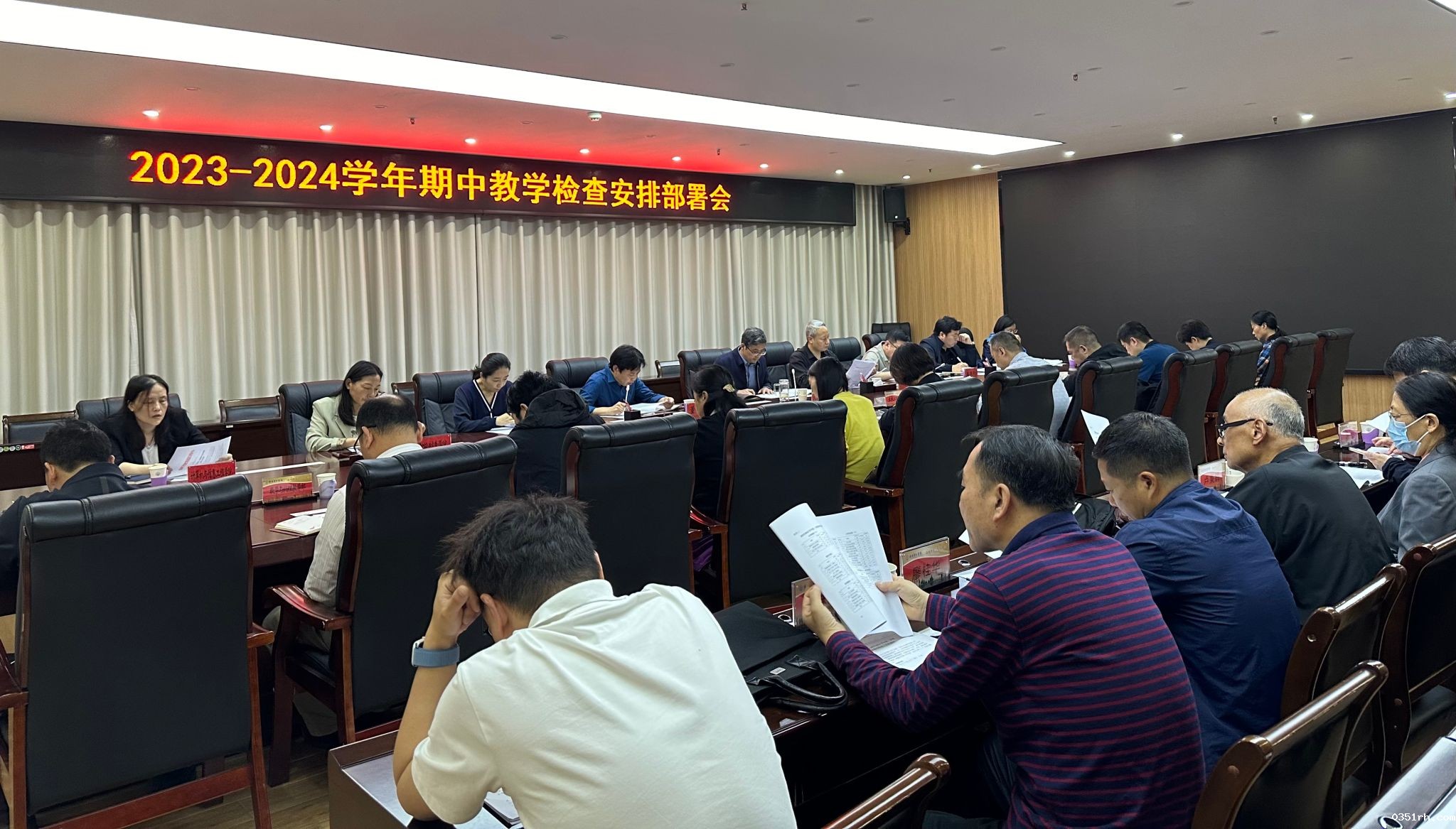 4月23日上午,我校在王城校区办公楼116会议室召开了2023/2024学年第二学期期中教学检查安排部署会。会议由副校长王新武主持,各教学单位副院长/副主任和校教学督导委员会全体委员参加了会议。