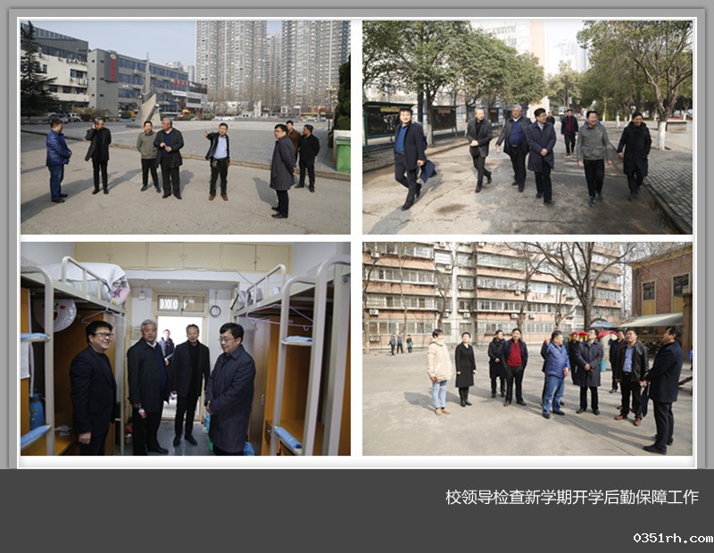 3月2日上午,校领导刘国际、张文选带领校办、学生处、后勤管理处、保卫处、基建处、资产经营公司、校办工厂等部门负责人,先后到王城校区、开元校区、九都校区教学楼、学生食堂、学生公寓、教育超市、动力交换站、浴池、幼教中心等处,重点检查新学期开学各项后勤保障工作。