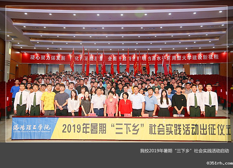 7月5日下午,我校2019年暑期“三下乡”社会实践活动出征仪式在王城校区图书信息中心报告厅举行。校党委副书记葛玻出席活动,宣传部、学工部、校团委负责人与各学院党委副书记、团委书记、指导教师以及实践团队代表共300余人参加了出征仪式。
