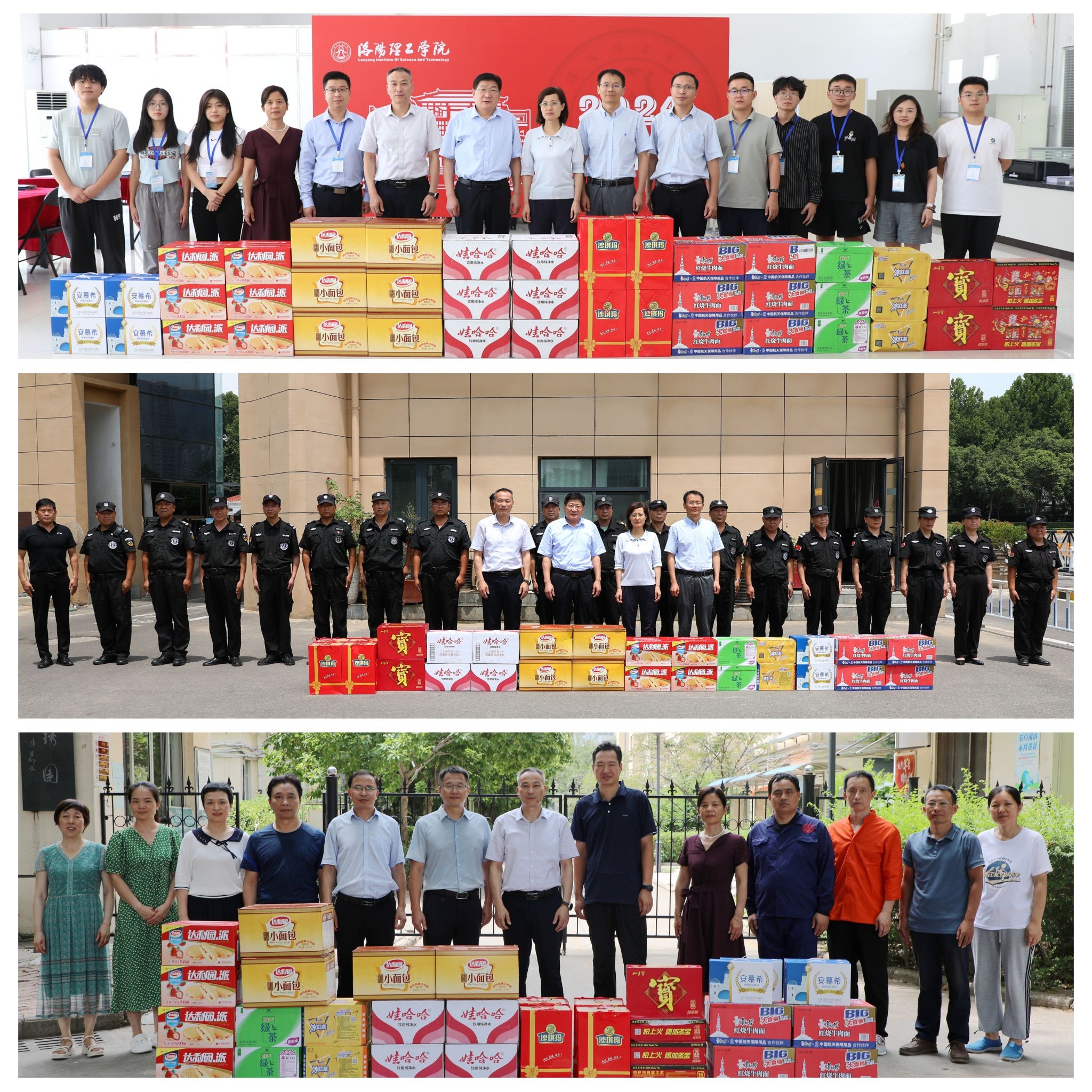 时值大暑,酷暑难耐。7月23日上午,我校开展“夏送清凉”慰问活动。党委书记卢志文,校长丁梧秀,党委副书记、工会主席曾涛,副校长上官林建一行先后慰问坚守在招生录取现场、学生公寓和值班门岗等暑期一线岗位的工作人员,为他们送上精心准备的防暑降温物品。