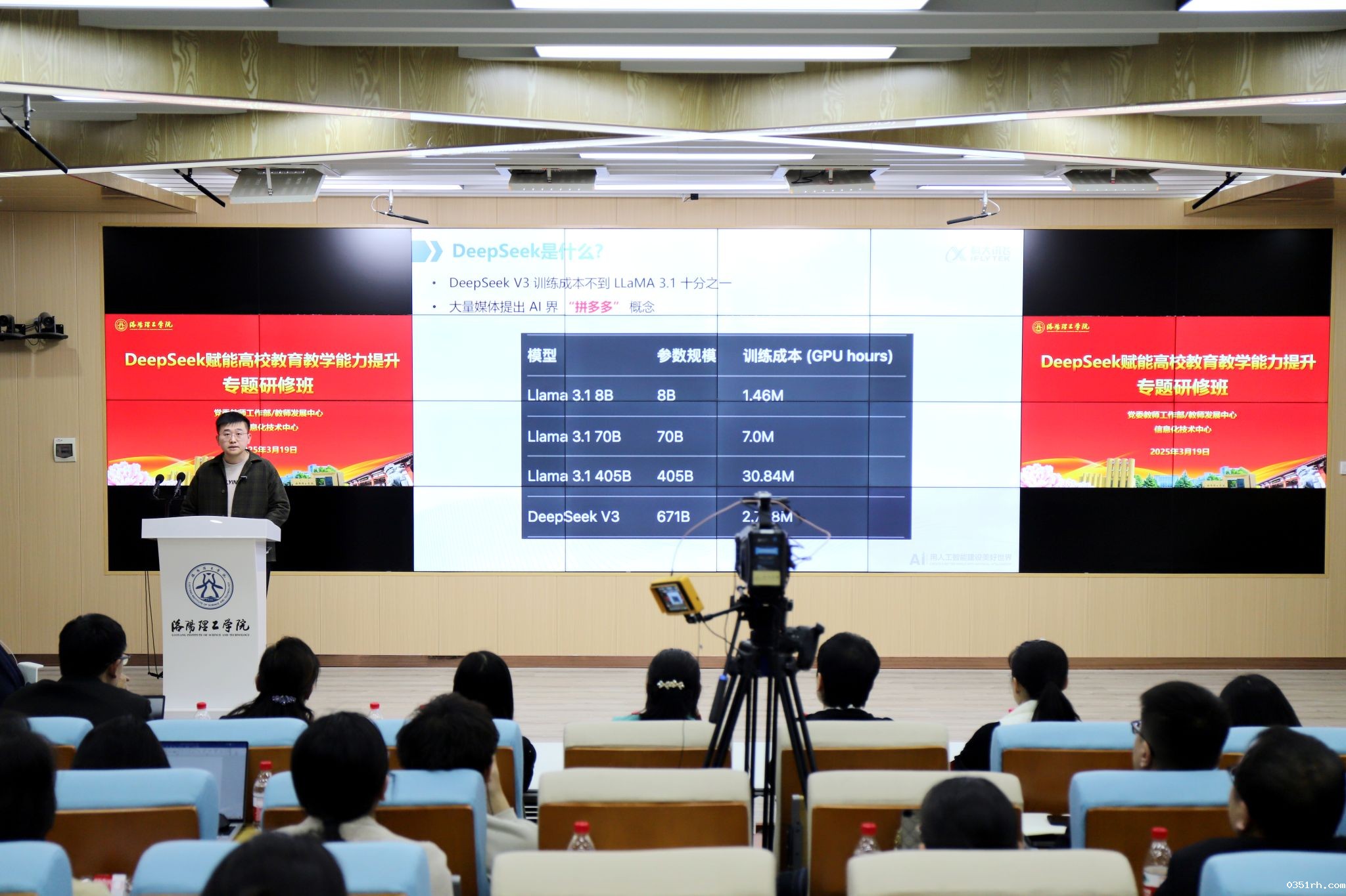 3月19日下午,DeepSeek赋能高校教育教学能力提升专题研修班在我校教师发展中心正式开班,本次研修班由党委教师工作部/教师发展中心与信息化技术中心携手打造。首场讲座特邀科大讯飞高级人工智能工程师朱吉光作《DeepSeek核心能力解析与场景应用》的专题培训,来自全校各部门的60余名教师现场参与。