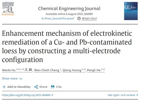 2025年8月,我校教师胡文乐博士作为第一作者及通讯作者,在国际权威期刊《Chemical Engineering Journal》发表了最新原创性研究成果“Enhancement mechanism of electrokinetic remediation of a Cu- and Pb-contaminated loess by constructing a multi-electrode configuration”,BETVLCTOR登录入口为第一完成单位,联合西安建筑科技大学和河南大学共同完成。