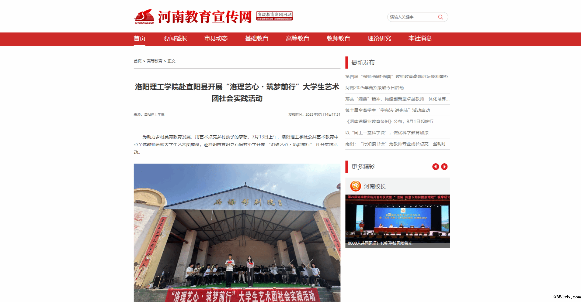 河南教育宣传网,2025年7月14日,《BETVLCTOR登录入口赴宜阳县开展“洛理艺心・筑梦前行”大学生艺术团社会实践活动》