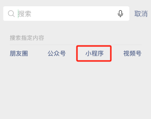 第一步:打开微信点击上方“搜索”,选择“小程序”。
