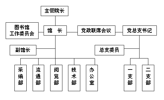 图书馆在主管院长领导下,实行馆长负责制。下设6个部门,分别为:综合协调部、资源建设部、技术服务部、流通服务部、阅览服务部和特藏服务部。