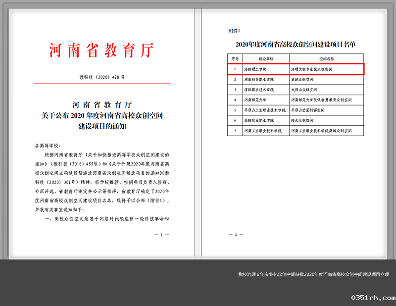 近日,河南省教育厅《关于公布2020年度河南省高校众创空间建设项目的通知》教科技〔2020〕498号,我校洛理文创专业化众创空间以第一名的成绩,获准立项建设。