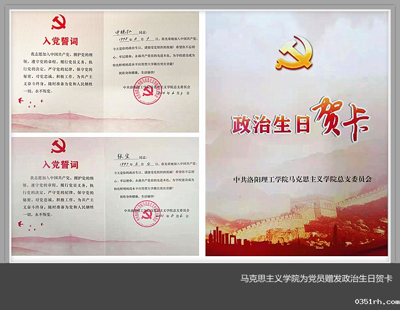 在党史学习教育过程中,马克思主义学院党总支开展别开生面的党日活动,为党员教师赠发政治生日贺卡,进一步唤醒党员的入党初心。政治生日是指党员的入党日期。马克思主义学院党总支精心制作的政治生日贺卡,内容包括入党誓词、党员的政治生日日期、对党员政治生日的祝贺和祝福等,旨在勉励党员教师不忘初心、牢记使命,永葆共产党员的先进本色,为学校建设成为特色鲜明的高水平应用型大学做出突出贡献。