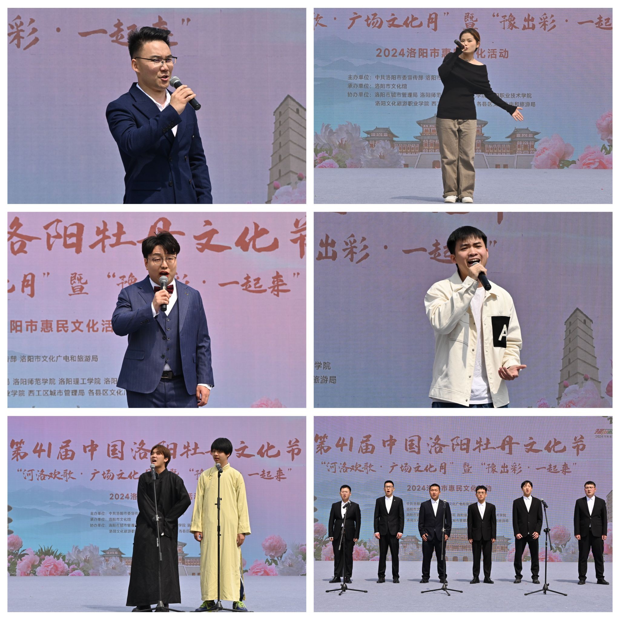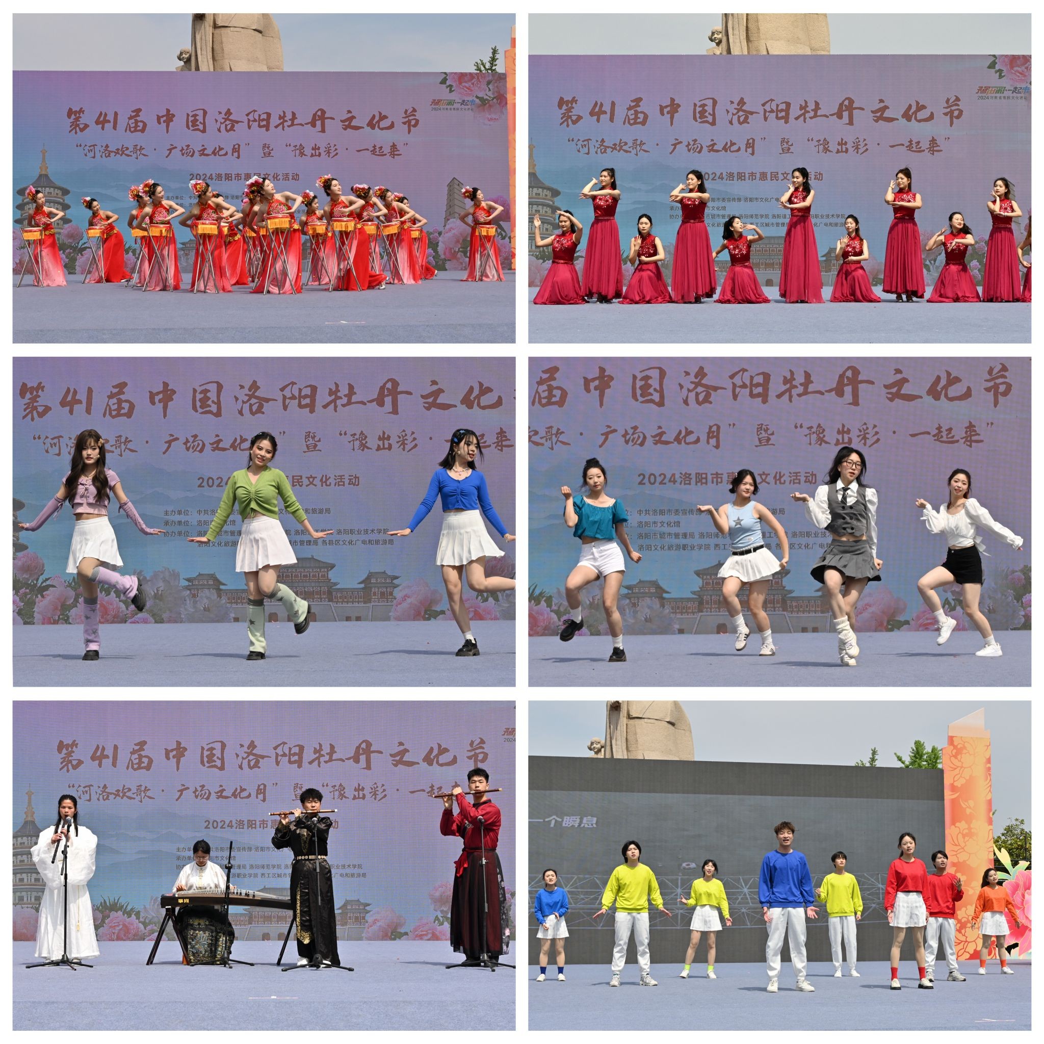 近日,第41届中国洛阳牡丹文化节“河洛欢歌•广场文化月”活动在洛阳市周王城广场举行。来自我校教育科学与音乐学院,学生社团UG-Power街舞社、管乐团、民乐协会、相声小品协会的百余名师生参加了本次演出。