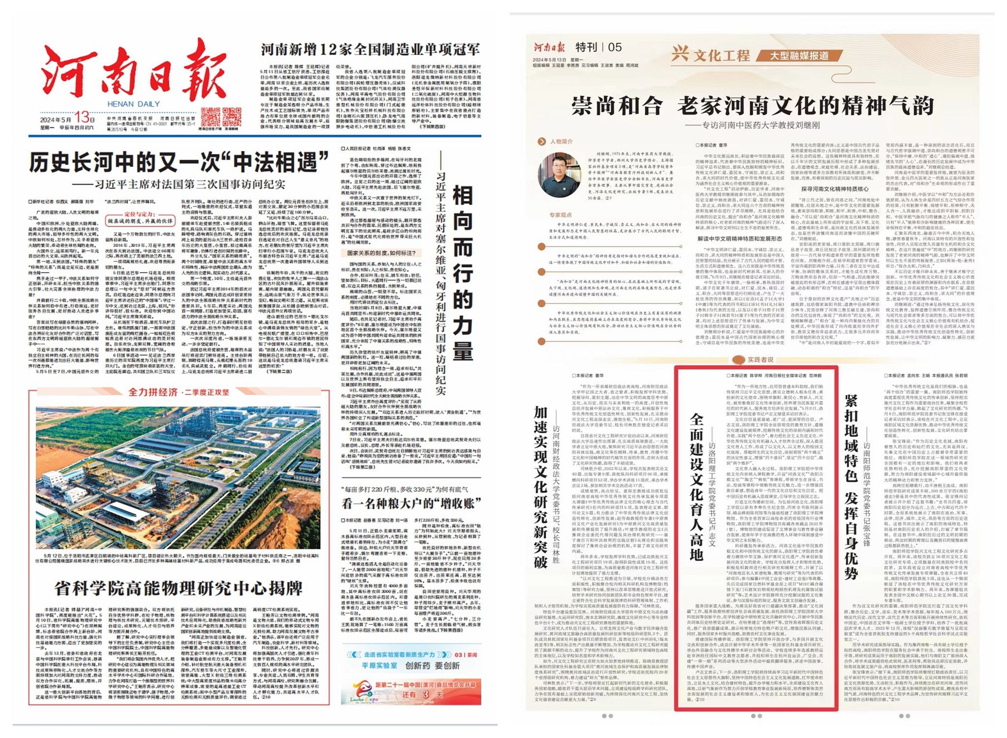 《河南日报》2024年5月13日第05版,《全面建设文化育人高地——访BETVLCTOR登录入口党委书记卢志文》