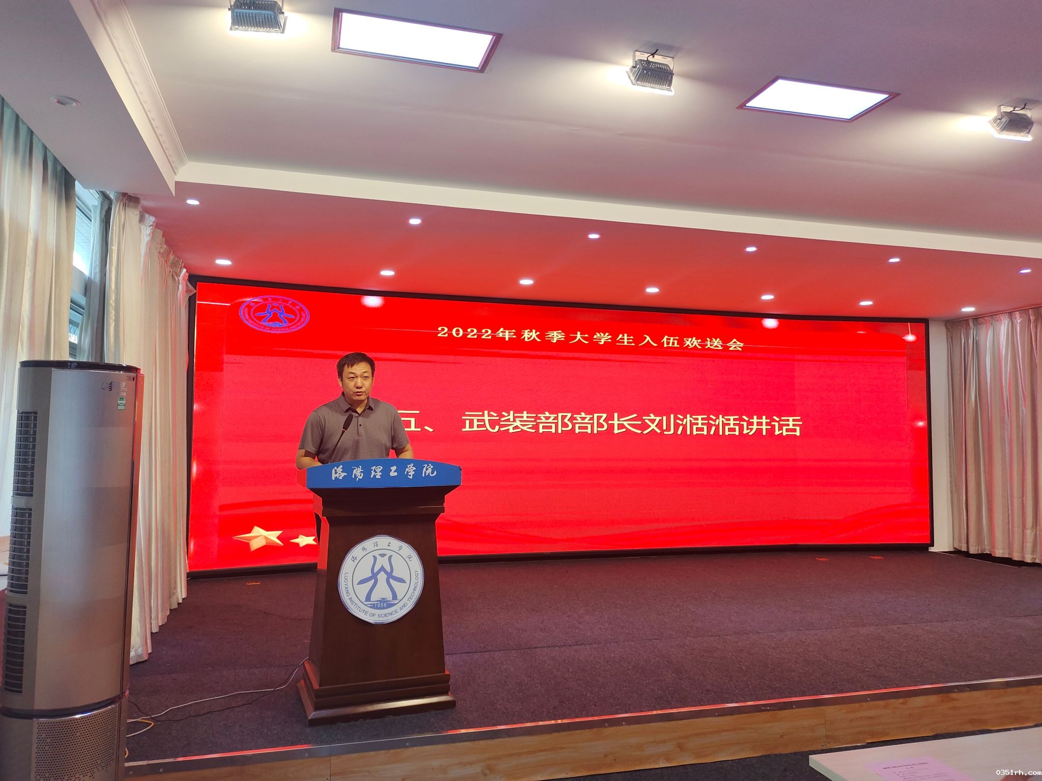 他希望入伍的大学生胸怀参军报国的梦想,刻苦学习,报效祖国。向入伍新兵提出三点要求:一是要坚定理想信念,矢志不渝听党话、跟党走。面向未来的军营生活,同学们要树立远大理想,练就过硬本领,带头攻坚克难。二是要塑造坚强意志。同学们进入军营后要发扬不怕苦不怕累的革命精神,与时俱进,始终保持先进性,练就“咬定青山不放松”的韧劲。三是要严守纪律,锤炼军人本色。同学们要严格遵守部队纪律和要求,服从命令,团结五湖四海的战友。