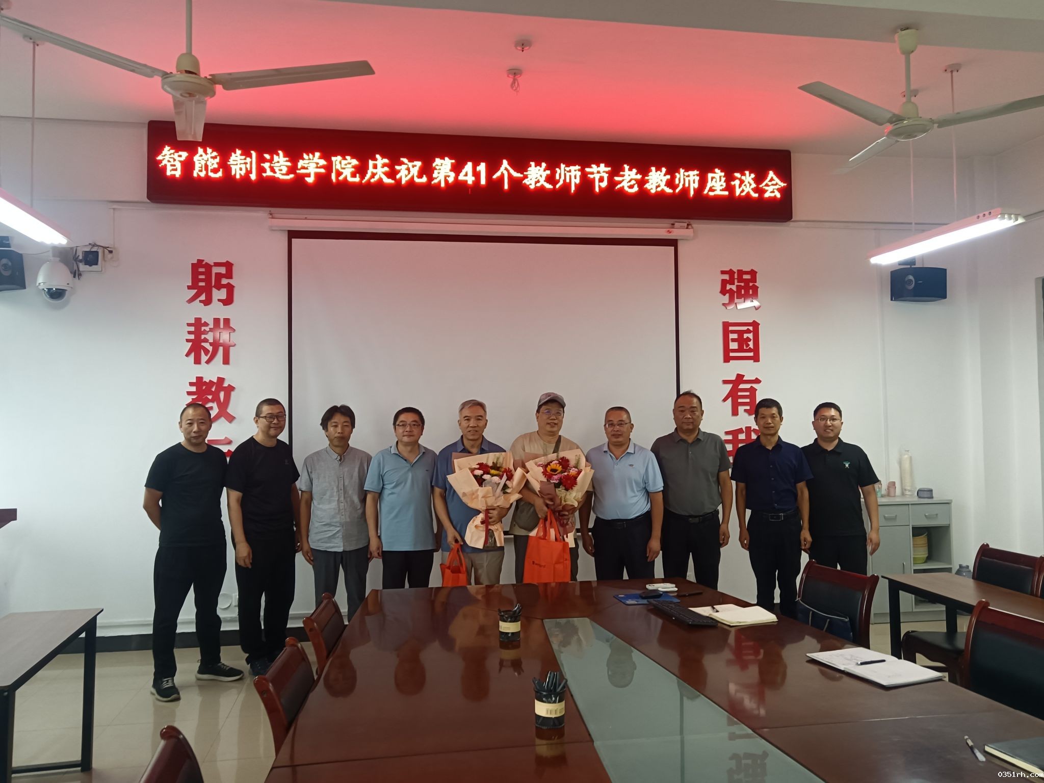 秋韵荡漾,桃李芬芳。在第41个教师节来临之际,为弘扬尊师重教优良传统,表达对全体教职工和退休教师的崇高敬意与诚挚关怀,智能制造学院2025年9月10日在学院会议室隆重举行教师节庆祝活动暨退休教师座谈会。学院党政领导班子成员、今年年退休教师代表、各系主任齐聚一堂,共叙育人情怀,共话学院发展。座谈会由学院党委书记贺艺主持。